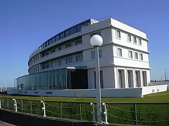 Архитектор Оливер Хилл разработал проект здания в ультрасовременном на начало тридцатых годов направлении стримлайн-модерн (Streamline Moderne), принадлежавшем к стилю арт-деко. Трёхэтажное здание имеет в плане вид обращённой к морю дуги окружности. Этажи соединяются между собой винтовой парадной лестницей, проходящей внутри расположенной посередине здания цилиндрической башни. К северному крылу пристроено кафе, также имеющее форму цилиндра. Фасад украшен парными скульптурами морских коньков работы Эрика Джилла, которые посетители могут рассмотреть во всех подробностях с прогулочной площадки на крыше здания. Из окон отеля открывается отличный вид на северо-западное побережье Англии.