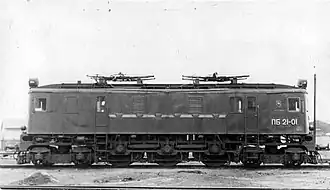 В апреле 1934 года был изготовлен первый в Советском Союзе пассажирский электровоз (тип Коломенского завода 3Э[2]), который получил обозначение ПБ21-01, что означало: имени Политбюро ЦК ВКП(б), нагрузка от движущих колёсных пар на рельсы составляет 21 тс, № 1. Электрооборудование было изготовлено на заводе «Динамо», постройку осуществил Коломенский завод.