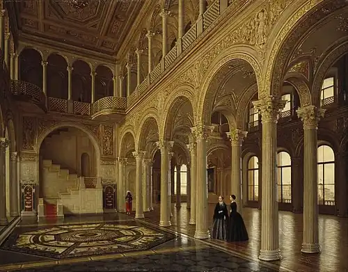 ![]() Э. П. Гау. Павильонный зал. Акварель. 1864. Государственный Эрмитаж, Санкт-Петербург | |