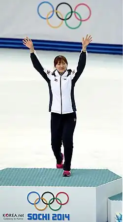 На зимних Олимпийских играх в Сочи в феврале 2014 года она вышла в финал на дистанции 500 метров по шорт-треку в группе 1, но вышла последней, когда Элиза Кристи споткнулась, обгоняя её. В результате она упала и повредила колено, снова вставая, и была вынуждена отказаться от бега на 1500 м. Она всё-таки выиграла бронзовую медаль в беге на 500 метров после дисквалификации Элизы Кристи. Это была первая медаль в женском шорт-треке на 500 м за 16 лет с тех пор, как Чон Ли Гён выиграла бронзовую медаль на зимних Олимпийских играх 1998 года. В эстафете она выиграла свою первую золотую медаль с момента ее олимпийского дебюта, став первым корейским конькобежцем по шорт-треку, завоевавшей медали во всех видах. В женском забеге на 1000 метров, состоявшемся 22 февраля, несмотря на неспортивную игру китаянки Фань Кэсинь, она выиграла свою первую золотую медаль в личном зачете.