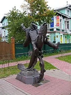 пр. Чумбарова-Лучинского, у дома № 30 | Скульптура «Архангельский мужик» (Сеня Малина) | 27 июня 2009 года, скульптор С. Н. Сюхин | ? | Экскурсионный показ |