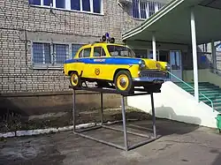 2015 год | Памятник милицейскому автомобилю | Памятник в виде автомобиля Москвич-403. Автомобиль был выпущен в 1963 году и работал в Ярославле, а в 1968 году был передан рыбинской ГАИ и стал ее первым автомобилем[3][4]. | У входа дежурной части ГИБДД Рыбинска (ул. Свободы, 14) | |