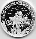 | 100 рублей | 2006 | серебро 925 пробы | 32,0 мм | 2,3 мм | гладкий | Ивасик-Телесик | На оборотной стороне монеты: в центре изображен главный герой украинской народной сказки Ивасик–Телесик, плывущий в челноке со связкой пойманной рыбы на фоне камышей. По кругу: слева надпись “IВАСИК-ТЕЛЕСИК”, справа – на стилизованной ленте “ЗА МОТИВАМИ УКРАIНСЬКИХ НАРОДНИХ КАЗОК”. | На лицевой стороне монеты: в центре – изображение государственного герба Приднестровской Молдавской Республики. По кругу надписи: вверху – “ПРИДНЕСТРОВСКИЙ РЕСПУБЛИКАНСКИЙ БАНК”, внизу – “100 РУБЛЕЙ”. В нижней части под гербом год выпуска монеты – “2006”. | ![]() |