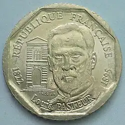 | 2 франка. 100 лет со дня смерти Луи Пастера Дизайнер — Пьер Родье | |||||||||||