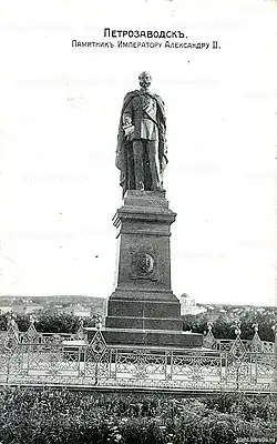 30 августа 1885 года на Соборной площади Петрозаводска был торжественно открыт один из первых в России памятников Александру II по проекту академика архитектуры, скульптора Ивана Шредера (в 1918 году памятник был снесён и переплавлен)[4].