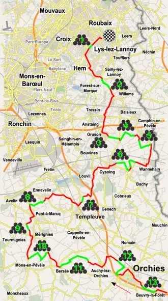Гонщики стартуют в Компьень и финишируют в Рубе. Спортсменам предстоит преодолеть почти 258 километров. По маршруту гонки будет 27 участков с брусчаткой общей протяжённостью 55 км.