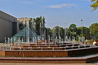 | Декоративная скульптура фонтана работы Рихарда Маурса | Памятник Эрнсту Брастиньшу | Памятник Андрею Упиту | Памятный камень, посвящённый становлению латышского театра |