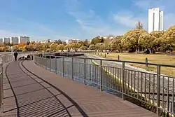 Через Большой городской пруд от берегов Дендропарка к набережной Парка Победы архитекторы проложили мост и сделали прогулочную набережную над водой[8].