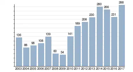 С июля по сентябрь 2013 года было осуществлено 120 судозаходов[10].