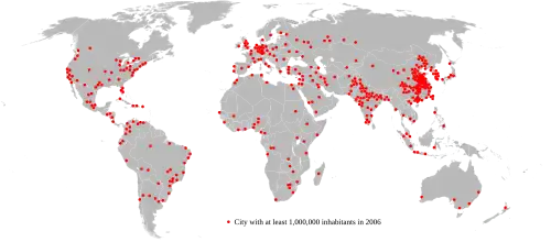 В настоящее время пальму первенства по числу городов-«миллионников» удерживает Китай: в 2012 г. там насчитывалось более 100 городов-«миллионников»[10], включая Шанхай (24 млн человек), Пекин, Чунцин, Тяньцзинь и Гуаньчжоу, в каждом из которых проживает более 10 млн человек. Другие крупные города мира: