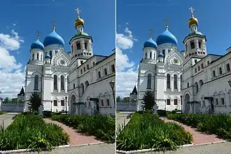 В 1834—1836 годах были построены (или перестроены из старых) жилые и хозяйственные корпуса (архитектор Михаил Бове). В 1905—1908 построен монументальный соборный храм Иверской иконы Богоматери в русско-византийском стиле (архитектор Пётр Виноградов).