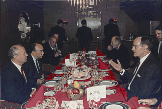 13 ноября 1991 года Верховный совет СССР, в котором главную роль играла делегация РСФСР, делегации республик, не разрешил государственному банку СССР какое бы то ни было финансирование правительства и президентской администрации СССР. С 13 ноября 1991 года президент Горбачев перестал получать заработную плату и не мог платить заработную плату своему личному аппарату и дипломатическим ведомствам. Потом этим дипломатическим ведомствам стало платить заработную плату руководство РСФСР[54].