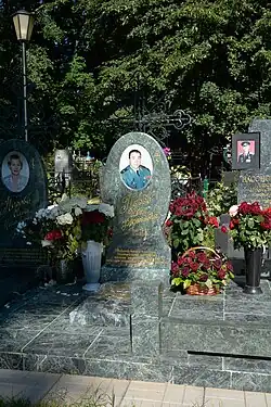 Похоронен 11 августа на Скорбященском кладбище в городе Рязань рядом с супругой. На могильной плите эпитафия: «Русский генерал земли рязанской. Жил, служил во благо всех людей. В их сердцах легендою остался. Честью чист и совестью своей...».