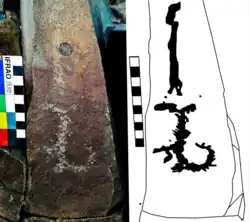В нескольких шагах от главной плоскости располагается ещё один выход пласта девонского песчаника, крайняя южная часть отвеса скалы имеет две условно вертикальные и перпендикулярные друг другу плоскости с наскальными рисунками[1].
