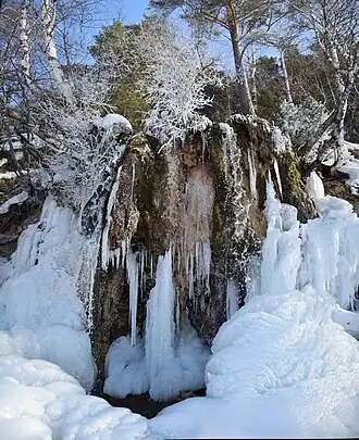 По данным 1958 года расход воды составлял 15–20 л/с, температура воды около 5 °C, вода карбонатная, по руслу ручья и водопада есть отложения карбоната кальция[1].