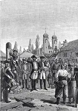 В XVI столетии произошло два казацких восстания — Косинского[3], один из безземельных шляхтичей, и Наливайка[4]. В 1591 году Косинский с казацким отрядом напал на Белую Церковь, забрал деньги и драгоценности и уничтожил все польские официальные бумаги, и скрылся где-то в степи, но восстание, поднятое им, не прекращалось: вся Киевщина и Брацлавщина были покрыты небольшими отрядами своевольников, которые грабили земян и мещан. Волнение распространилось на Волынь и Подолье.
