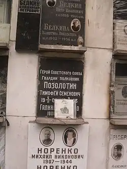 - ↑ Информация из списков захоронения в электронном банке документов ОБД «Мемориал» (архивные материалы ЦАМО)