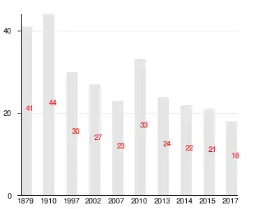 | 1997[17] | 2002[18] | 2007[19] | 2010[20] | 2013[21] | 2014[22] | 2017[1] |