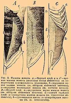 - ↑ БРЮШНАЯ СТЕНКА — Большая Медицинская Энциклопедия. xn--90aw5c.xn--c1avg. Дата обращения: 23 августа 2019. Архивировано 4 сентября 2017 года.