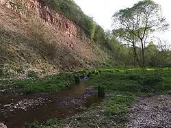 Берега реки известны рядом геологических обнажений, где на дневную поверхность выведены отложения нижнего и среднего кембрия, нижнего и среднего ордовика, среднего девона и четвертичные образования. На правом берегу реки, под маломощным четвертич-ным покровом, в бортах долины и в русле реки видны выходы голубовато-серых глин. На левом берегу находится перевёрнутая глыба — ледниковый отторженец. В древних породах можно найти окаменевших животных: плеченогих и головоногих моллюсков, трилобитов, иглокожих и даже следы давно вымерших полипов. На крутых склонах и на террасах произрастают черёмуха, серая ольха, ивы. В пойме реки можно встретить чистяк весенний, ветреницу лютиковую, лютик кашубский.