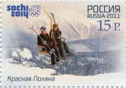 - ↑ Лист. Серия «XXII Олимпийские зимние игры в Сочи. Туризм на Черноморском побережье России». rusmarka.ru. Дата обращения: 3 июня 2023. Архивировано 3 июня 2023 года.