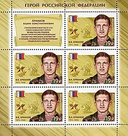 - ↑ Герои Российской Федерации. Продолжение серии. rusmarka.ru. Дата обращения: 15 октября 2023. Архивировано 18 октября 2021 года.