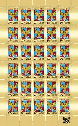 - ↑ 300 лет г. Перми (надпечатка нового номинала «100 р.» и текста на блоке с маркой № 2141 «Гербы субъектов и городов Российской Федерации. Пермский край»). rusmarka.ru. Дата обращения: 20 мая 2023. Архивировано 20 мая 2023 года.