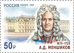 - ↑ 350 лет со дня рождения А. Д. Меншикова (1673–1729), государственного и военного деятеля. rusmarka.ru. Дата обращения: 4 декабря 2023. Архивировано 4 декабря 2023 года.