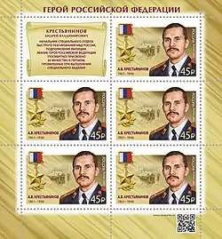 - ↑ Серия «Герои Российской Федерации». А. В. Крестьянинов (1961–1996), Н. Г. Кульков (1969–2000). rusmarka.ru. Дата обращения: 22 апреля 2023. Архивировано 21 марта 2023 года.