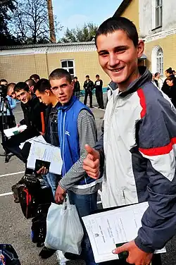 Лица, приписанные к призывным участкам, именуются призывниками[1]. В России также используется именование новобра́нец.