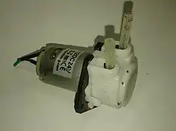 Чернильный насос — деталь принтера, предназначенная для поддержания вакуума в чернильном тракте. Чернильные насосы используются как в различных системах подачи чернил, так и в системах автоматической прочистки печатающей головки (головок). Насос, работающий в системе подачи чернил, работает совместно с датчиком уровня чернил, находящимся в ёмкости (англ. subtank), непосредственно питающей печатающую головку. Алгоритм включения насоса следующий: принтер печатает — печатающая головка расходует чернила из питающей ёмкости — в питающей ёмкости опускается уровень чернил — срабатывает датчик уровня — включается насос, закачивающий чернила из основной ёмкости с чернилами в питающую ёмкость. Алгоритм выключения насоса: работающий насос наполняет питающую ёмкость чернилами — датчик уровня выключается — выключается насос. Сигнал с датчика подаётся либо непосредственно на насос, либо через промежуточные электронные устройства, выполняющие всевозможные вспомогательные функции: усиление сигнала датчика уровня чернил, контроль уровня чернил в основной канистре с чернилами, выключение насоса в случае залипания датчика, учёт расхода чернил, регулировка скорости вращения вала насоса и т. п.