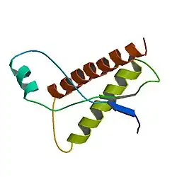 В пространственной структуре PrP выделяют неструктурированный N-концевой участок (а. о. 23—125 у человека) и глобулярный домен (а. о. 126—231), состоящий из трёх α-спиралей и двухцепочечного антипараллельного β-листа[28][29].