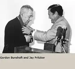 - ↑ Goldberger, Paul (23 мая 1979). Philip Johnson Awarded $100,000 Pritzker Prize. The New York Times (англ.). Архивировано 6 марта 2019. Дата обращения: 7 марта 2019.