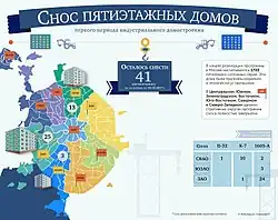 - 1 2 3 4 5 Программа сноса ветхих пятиэтажек в Москве. Досье. ТАСС (21 февраля 2017). Дата обращения: 3 июня 2017. Архивировано 5 июля 2017 года.