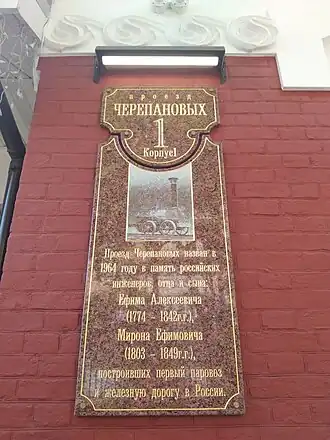 Проезд получил название в честь русских изобретателей отца и сына Черепановых, создателей первого в России паровоза[1].