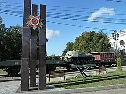 | Памятник-танк Т-34[10] | Сквер Танкистов | После освобождения города Орла от немецко-фашистских оккупантов 6 августа 1943 года в Первомайском сквере (ныне Танкистов) состоялось захоронение танкистов, погибших за освобождение города. 7 августа на братской могиле был установлен танк Т-70, который в 1968 году заменили на Т-34. | ![]() | ||