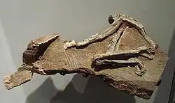 - ↑ Chatterjee S. 1993. Procompsognathus from the Triassic of Germany is not a crocodylomorph. Journal of Vertebrate Paleontology 13(3): 29A.