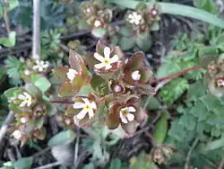 Соцветие — зонтик, несёт мелкие (размером до 1 см) цветки белого или розового цвета с пятью лепестками[1].