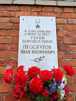 - В посёлке Монино Московской области на доме 4 по улице Красовского, где проживал Герой Советского Союза И. И. Проскуров, установлена мемориальная доска.