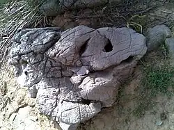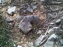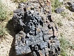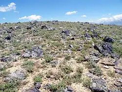 Поверхность плато, прилегающая к юго-западному борту, покрыта каменной россыпью причудливо выветренных форм[4]. Размер обломков — от нескольких сантиметров до двух метров и более. Они сложены серыми и тёмно-серыми известняками, реже — доломитами. При раскалывании обломки издают резкий неприятный запах, похожий на запах сероводорода. Тёмно-серая (почти до чёрной) окраска и резкий неприятный запах обусловлены значительной примесью захороненного в них органического вещества.
