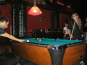- Игрок забил прицельные шары своей группы и затем отправил в заказанную лузу чёрный шар под номером 8.