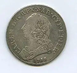 В конце XVIII века имели хождение медные монеты достоинством в 2 денаро, биллоновые монеты достоинством в ½, 1, 2½ и 7½ сольдо, серебряные монеты достоинством в ¼, ½ и 1 скудо, и золотые монеты достоинством в ¼, ½, 1, и 2½ доппии. В 1790-х к ним были добавлены медные монеты достоинством в 1 и 5 сольдо и биллоновые монеты достоинством в 10, 15 и 20 сольдо.