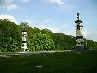 - Два въездных столба-пилона сталинской архитектуры, возведённых одновременно на проспекте Героев Харькова, Полтавском шоссе, Харьковском шоссе и со строительством каскада в саду Шевченко в 1954 году к 300-летию Харькова и символизирующих границу города. Прошли косметический ремонт в апреле 2008 и в августе 2011.