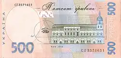 | Рисунок реверса | Реверс пятисот гривен образца 2015 года |