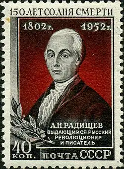 Алекса́ндр Никола́евич Ради́щев (20 [31] августа 1749, Москва[4] — 12 [24] сентября 1802, Санкт-Петербург) — русский прозаик, поэт, философ, де-факто руководитель Петербургской таможни, участник Комиссии по составлению законов при Александре I.