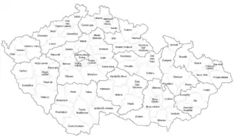 Три района состоят только из городов (statutární města, ед. město): Брно, Острава и Пльзень. Они получили статус районов только в 1971 году; столица, Прага (Hlavní město Praha), имела особый статус, но десять районов Праги (obvody) были в общем эквивалентны районам (okres).
