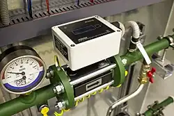 Расходоме́р — прибор, измеряющий объёмный расход или массовый расход вещества, то есть количество вещества (объём, масса), проходящее через данное сечение потока, например, сечение трубопровода в единицу времени. Если прибор имеет интегрирующее устройство (счётчик) и служит для одновременного измерения и количества вещества, то его называют счётчиком-расходомером.