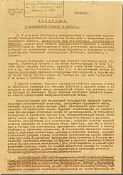 Постановление Коминтерна от 11 января 1934 года стало официальным политическим документом, в котором впервые авторитетная международная организация признала существование отдельной македонской нации и македонского языка[1].