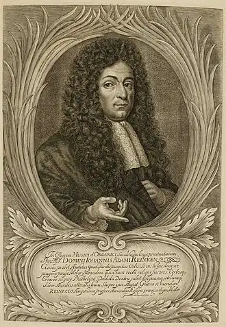 - ↑ Ulf Grapenthin, Art. Reincken, Johann Adam, Biographie in: MGG Online, hrsg. von Laurenz Lütteken, Kassel, Stuttgart, New York 2016ff., veröffentlicht November 2016, https://www.mgg-online.com/mgg/stable/52554 Архивная копия от 25 декабря 2021 на Wayback Machine