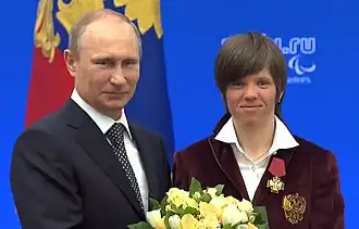 - ↑ Елене Ремизовой, чемпионке XI Паралимпийских зимних игр 2014 года в Сочи в соревнованиях по лыжным гонкам на дистанции 15 километров среди слабовидящих спортсменов.